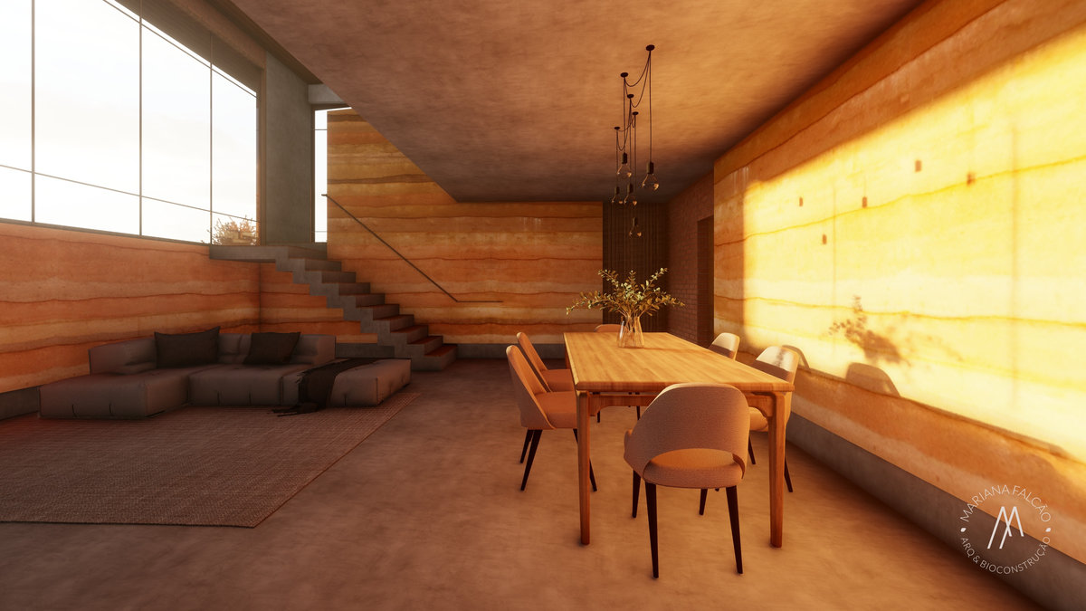 Guiado pela melhor orientação solar, pelas condicionantes térmicas e pelas diretrizes legais do terreno, o projeto se destaca pela escolha de técnicas construtivas simples e expressivas, como a taipa de pilão e o concreto aparente — soluções que trazem verdade e textura à arquitetura. Em meio a um condomínio marcado por repetições de fachadas e conceitos, a Casa HF afirma-se como uma proposta autêntica, onde cada elemento reflete harmonia, materialidade e pertencimento ao lugar.